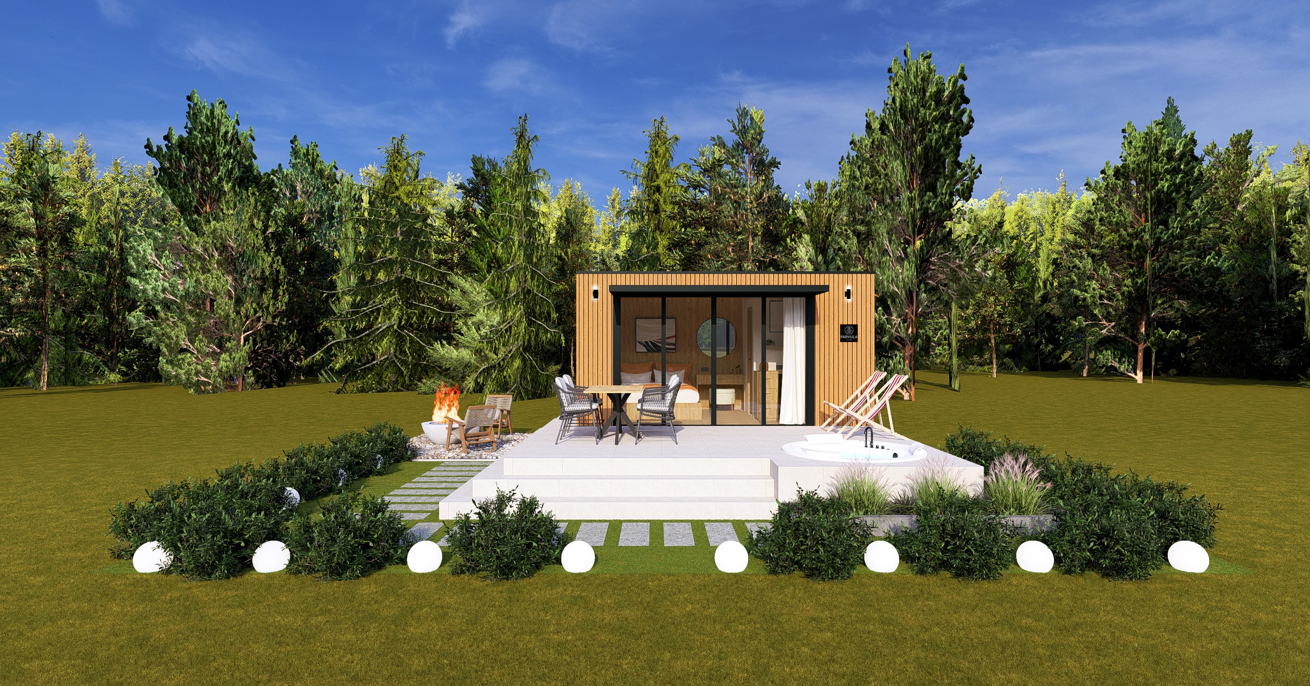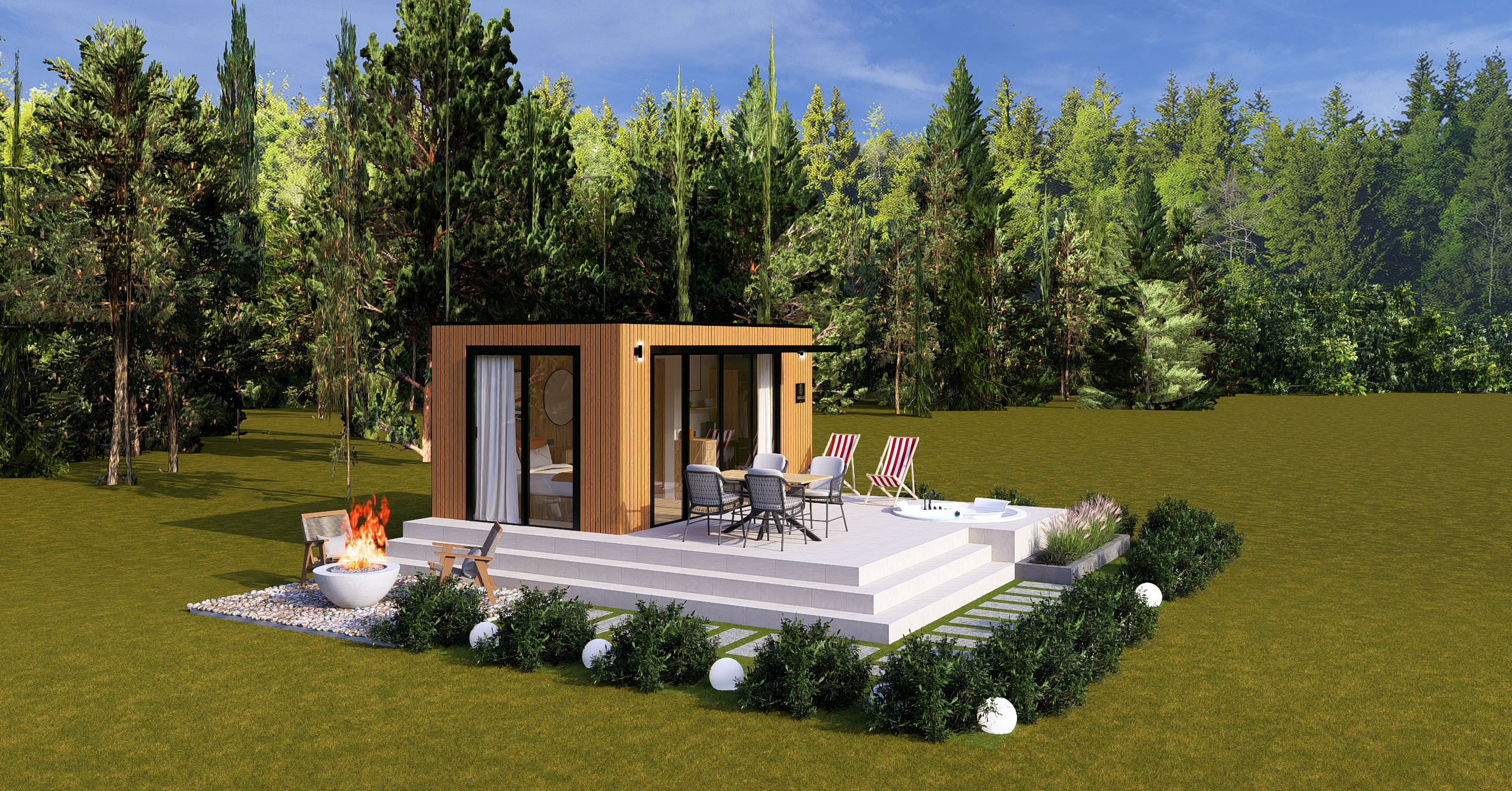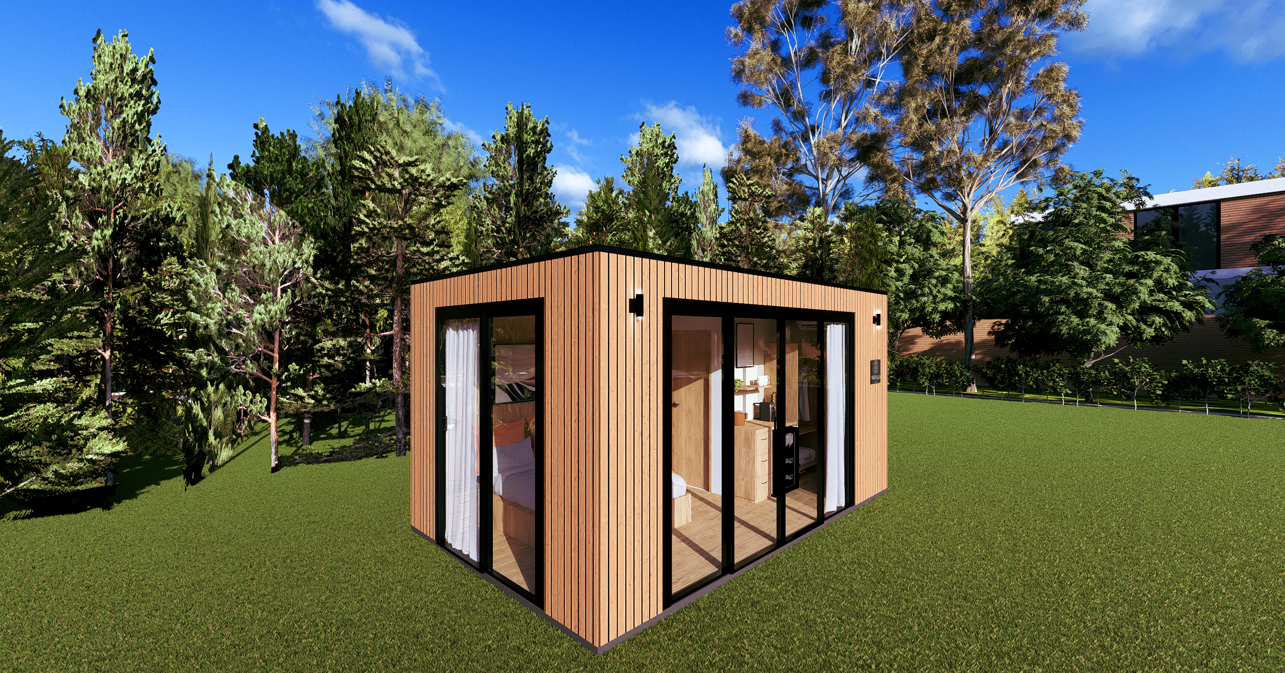 Ön ve yan cephe: 1. sınıf emprenyeli çam kaplama