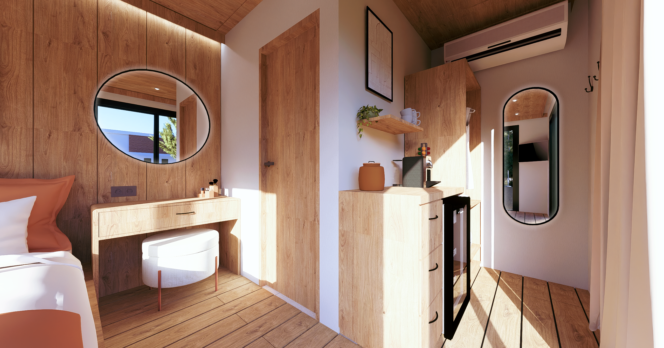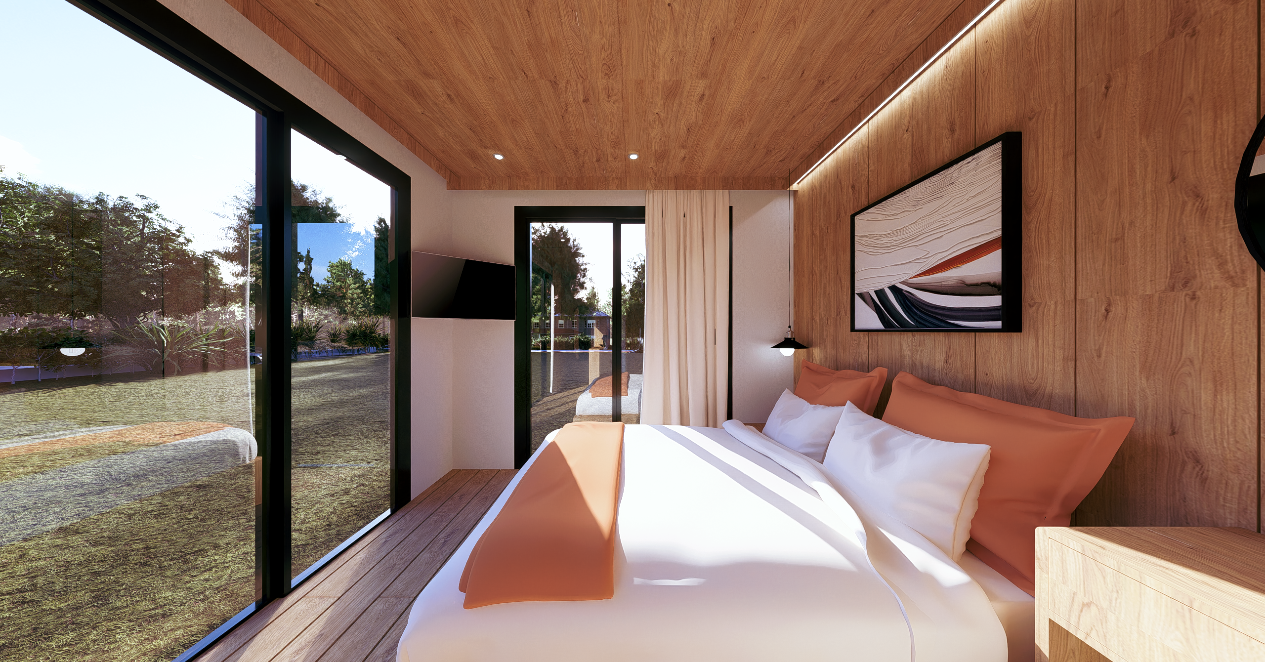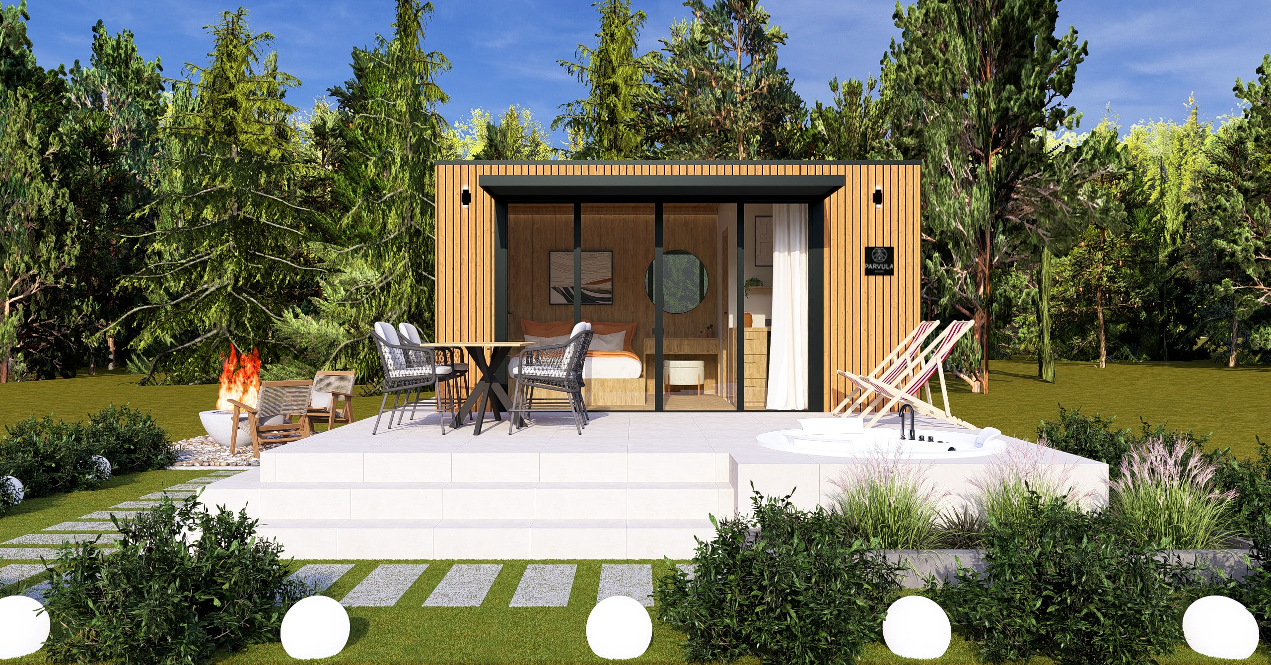 Ön ve yan cephe: 1. sınıf emprenyeli çam kaplama