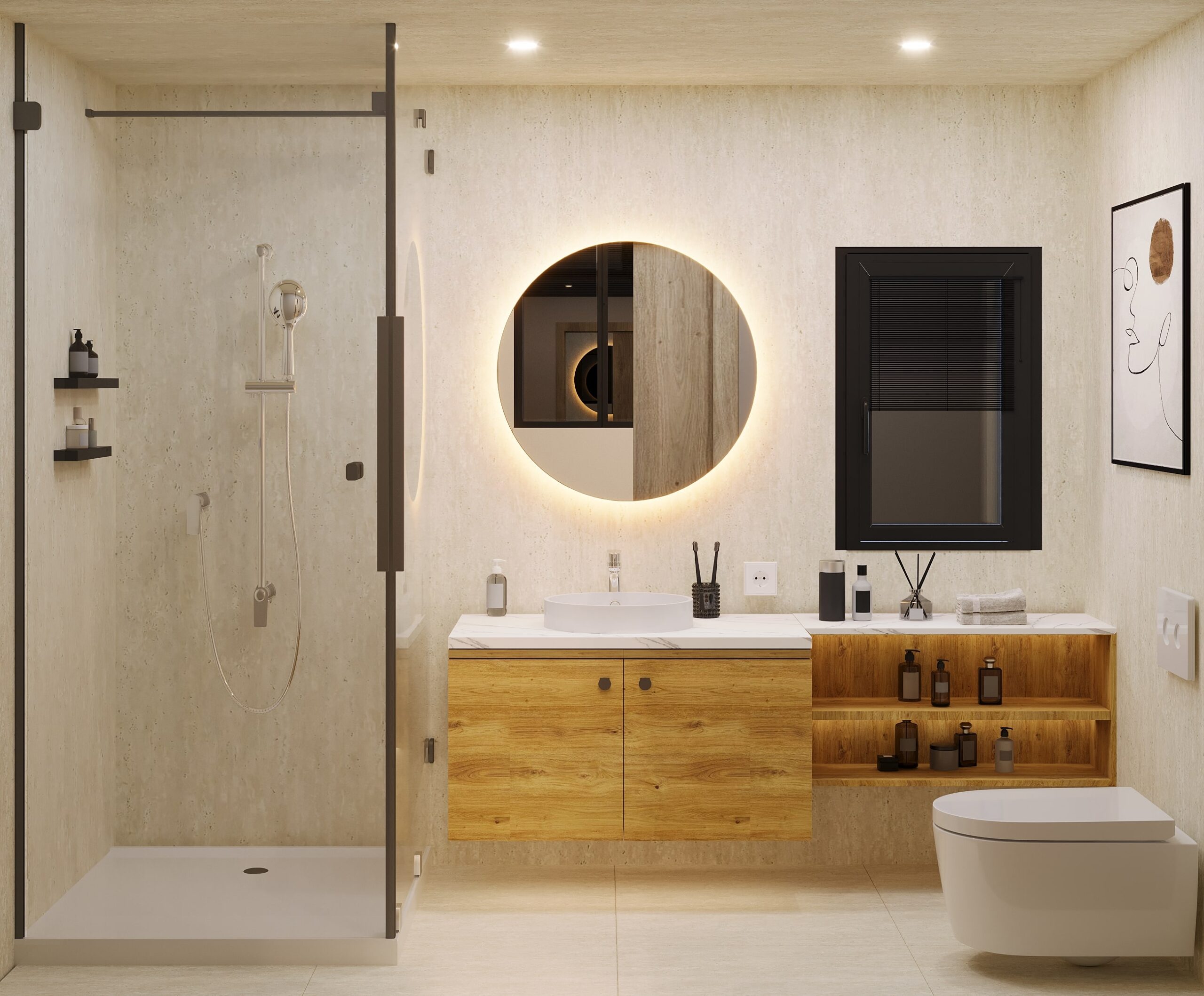 • 140 cm özel tasarım Banyo dolabı ve dolap üzeri akrilik tezgah , çamaşır ve termosifon  için boy dolabı
