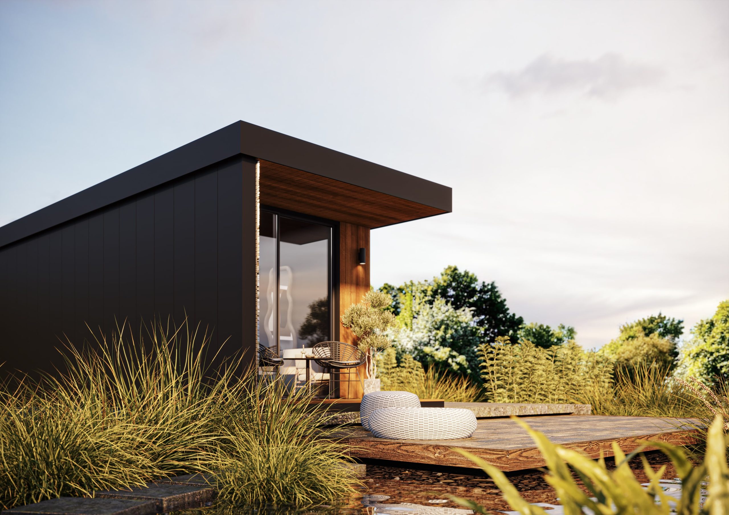 Ön cephe: Thermowood Ayous ağacı (ısıl işlem görmüş, suya dayanıklı)